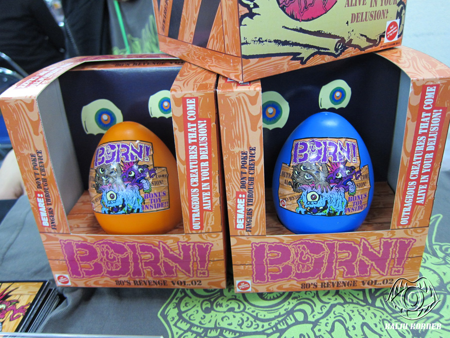 | These sets, featuring nice handmade boxes, came with T-shirts + a resin toy in the egg. Cool! |